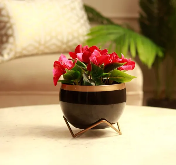 Black Rust Iron Apple Pot With Stand | Table Top Accessories