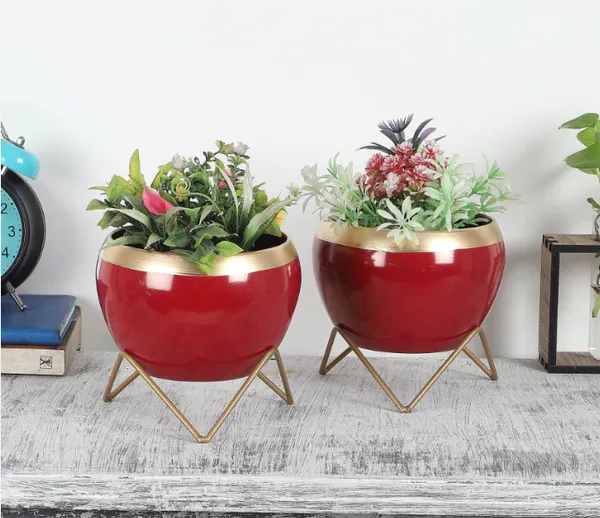 Set Of 2 Red Rust Iron Apple Pot With Stand | Table Top Accessories