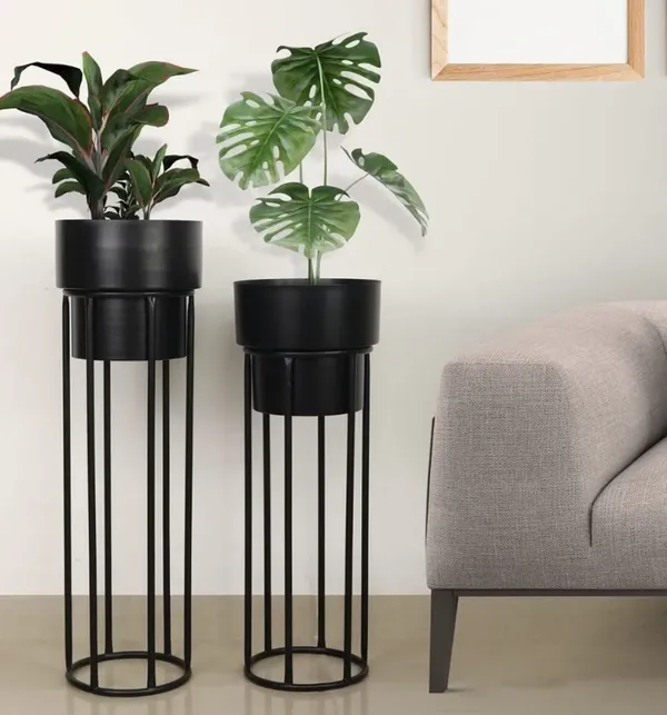 Set Of 2 Black Rust Iron Pot With Stand | For Indoor Gardening