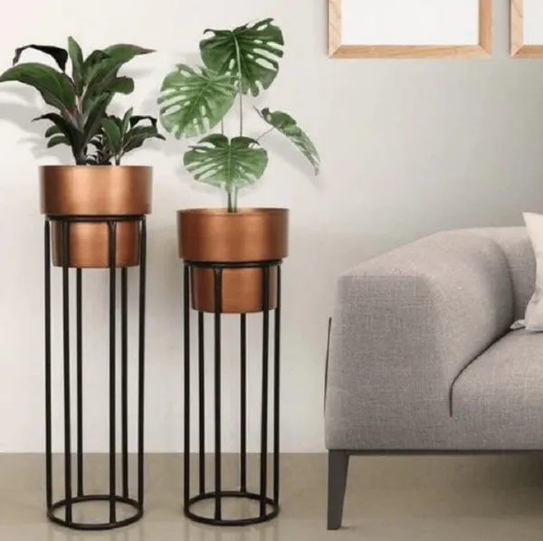 Set Of 2 Copper Rust Iron Copper Pot With Stand | For Indoor Gardening