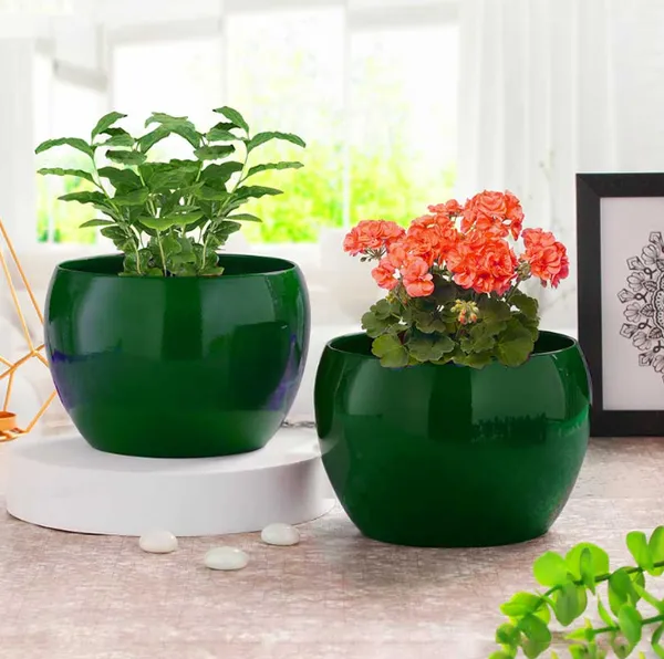 Set Of 2 Green Rust Iron Apple Pot | Table Top Accessories