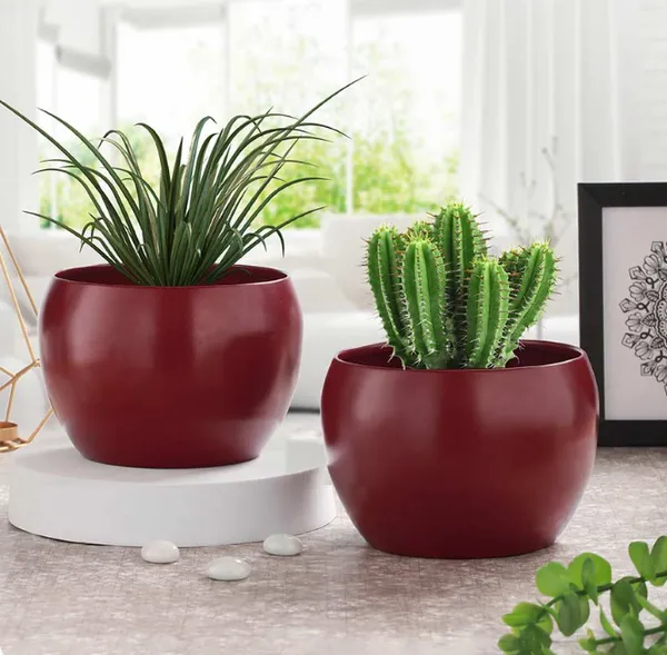 Set Of 2 Wine Rust Iron Apple Pot | Table Top Accessories